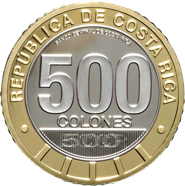El anverso presenta detalles técnicos notables: el valor facial de 500 colones, las leyendas “República de Costa Rica” y “Banco Central de Costa Rica,” y una imagen latente que, al girar la moneda, transforma “500” en “BCCR.” Cinco barras en alto relieve no solo realzan la estética sino también facilitan su identificación táctil.