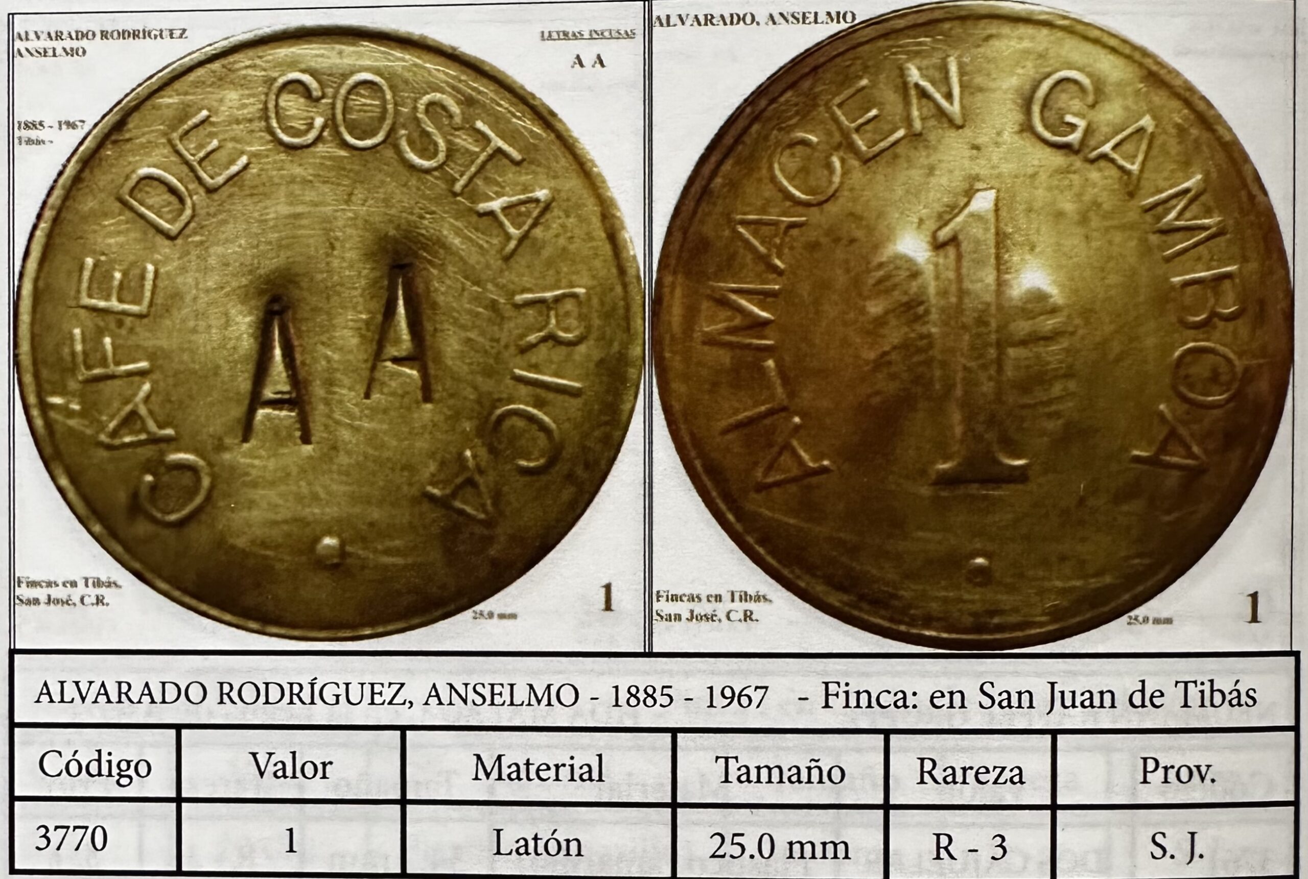 Boleto de café emitido por el señor Anselmo Alvarado Rodríguez (1885 – 1967), para su finca en San Juan de Tibás.