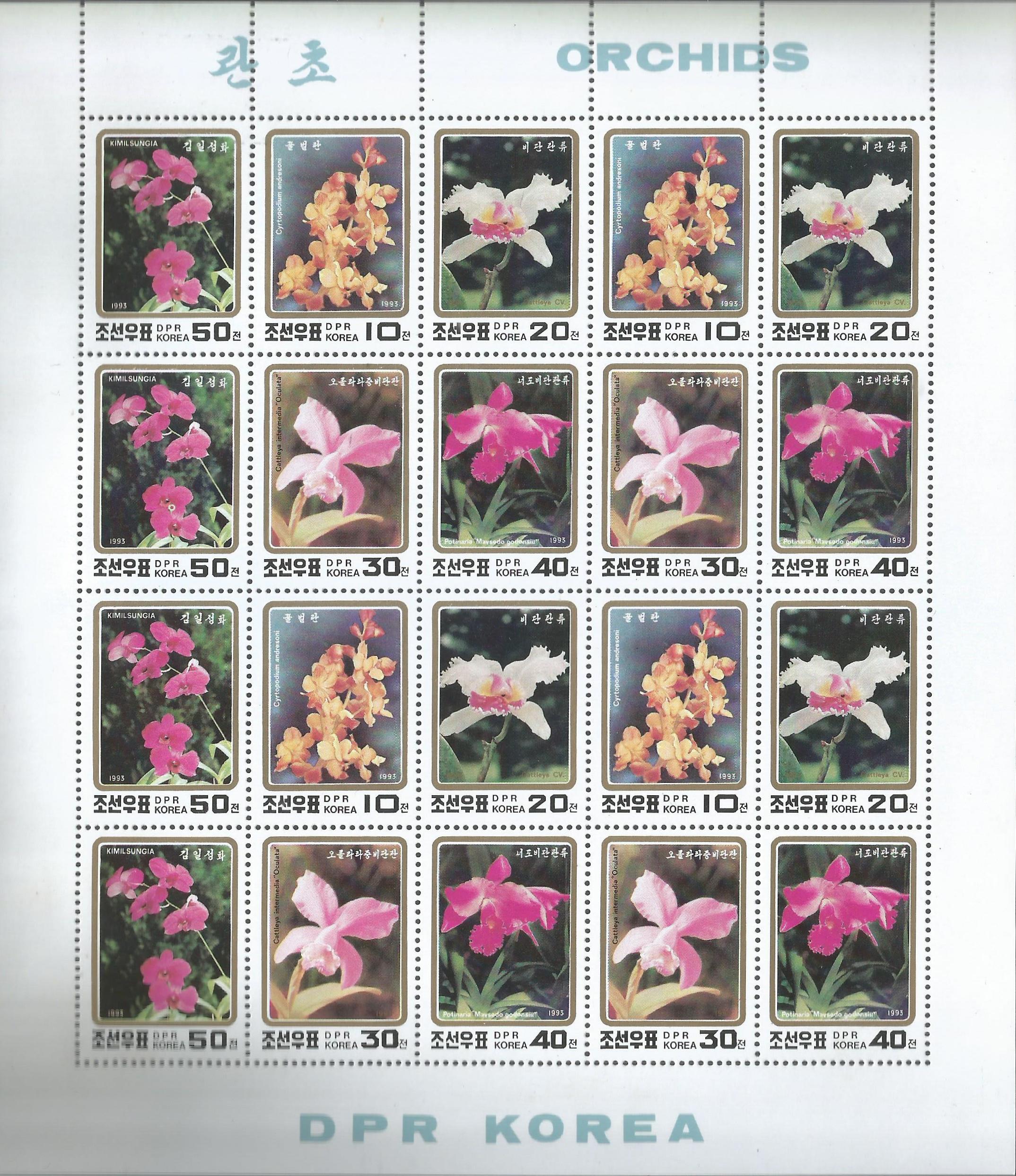 Corea del Norte - Varias clases de orquídeas (1993) cantidad