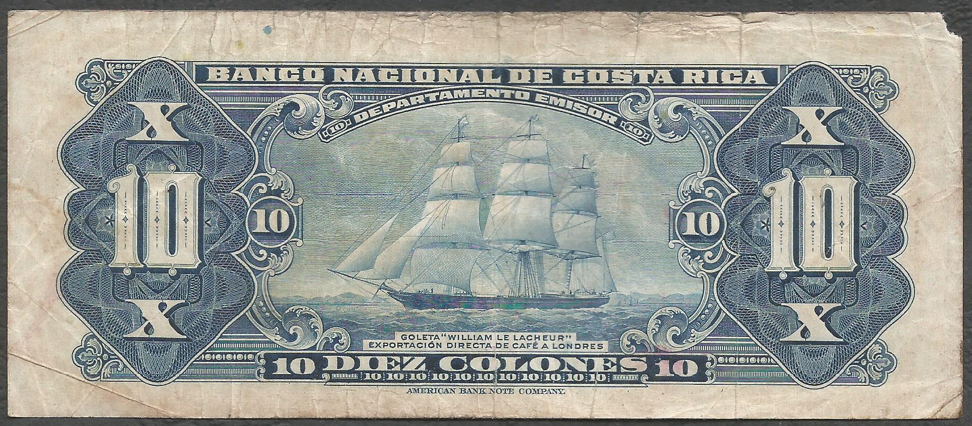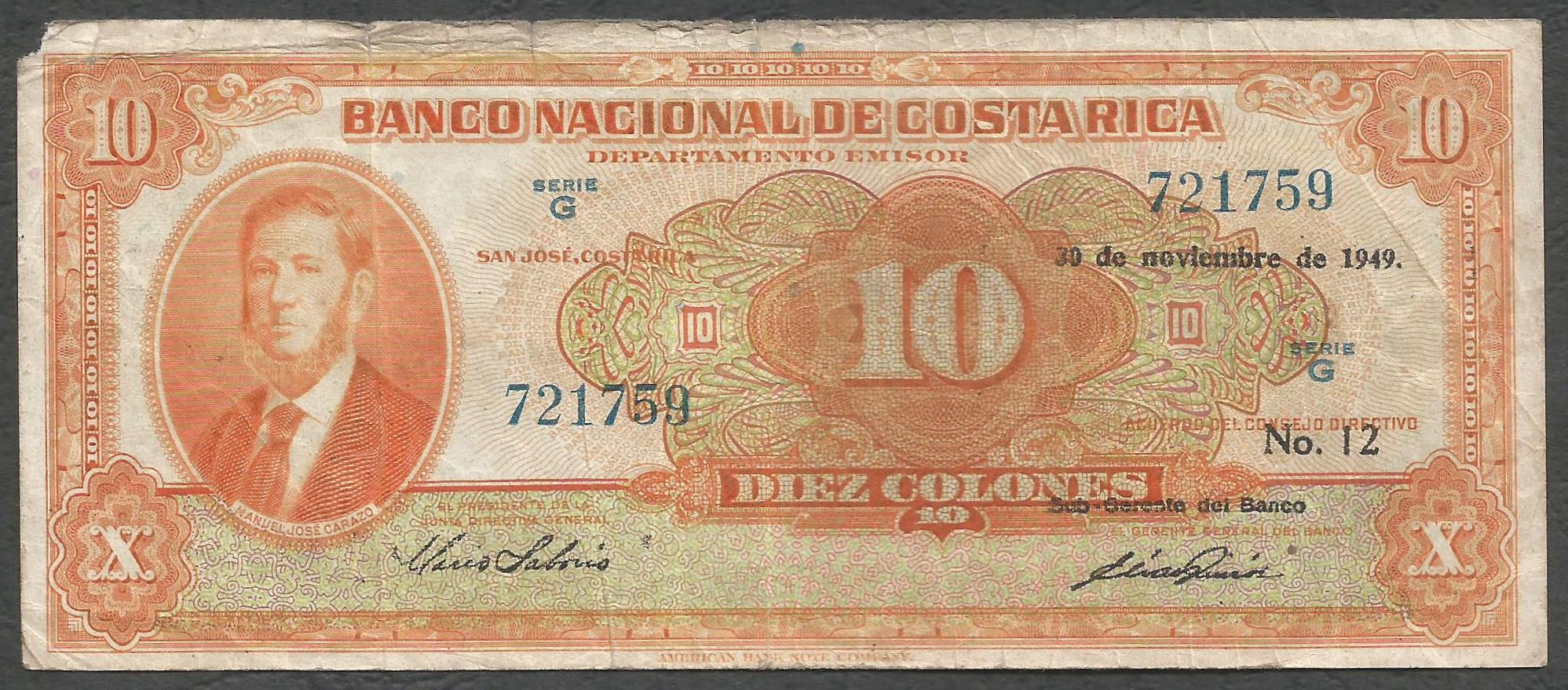 Costa Rica – 10 colones (1949) Serie G