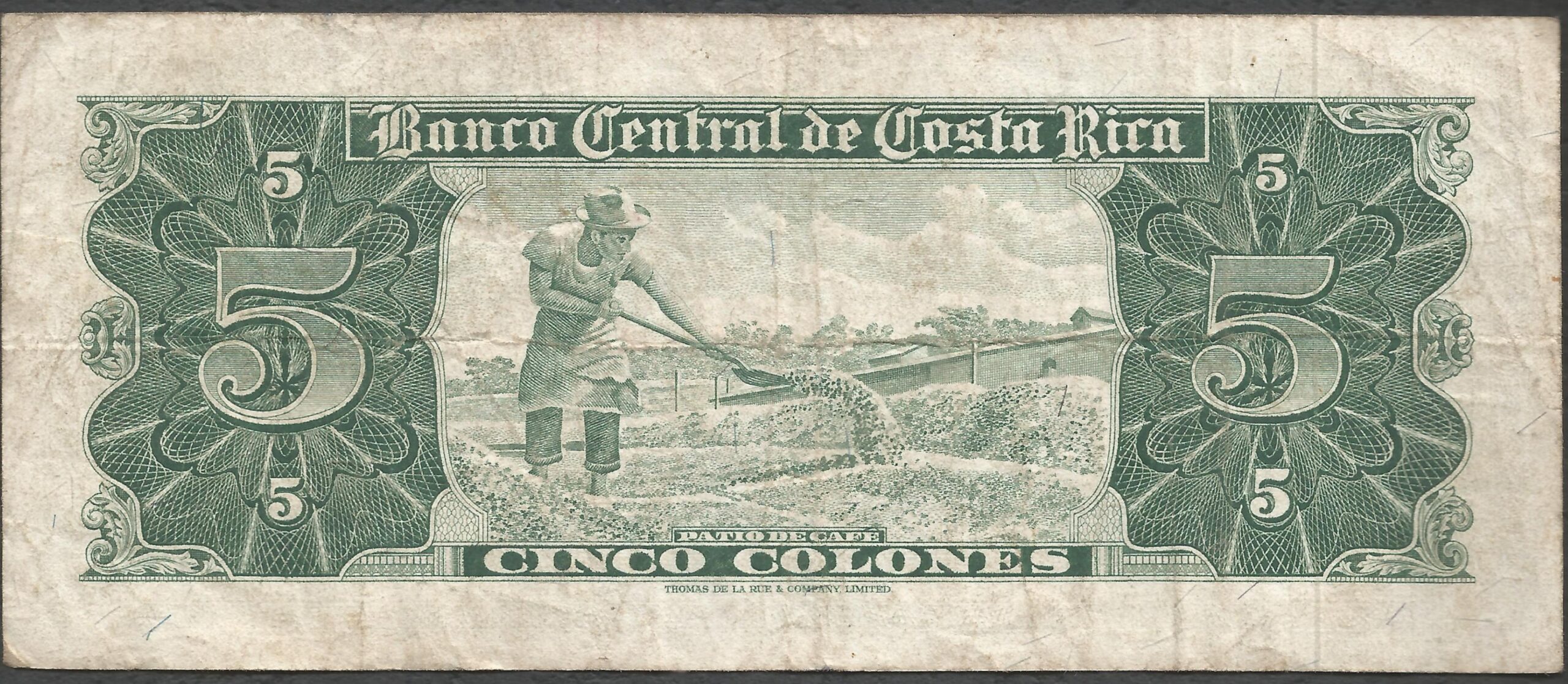 Costa Rica - 5 colones (1965) P#228a.4 cantidad