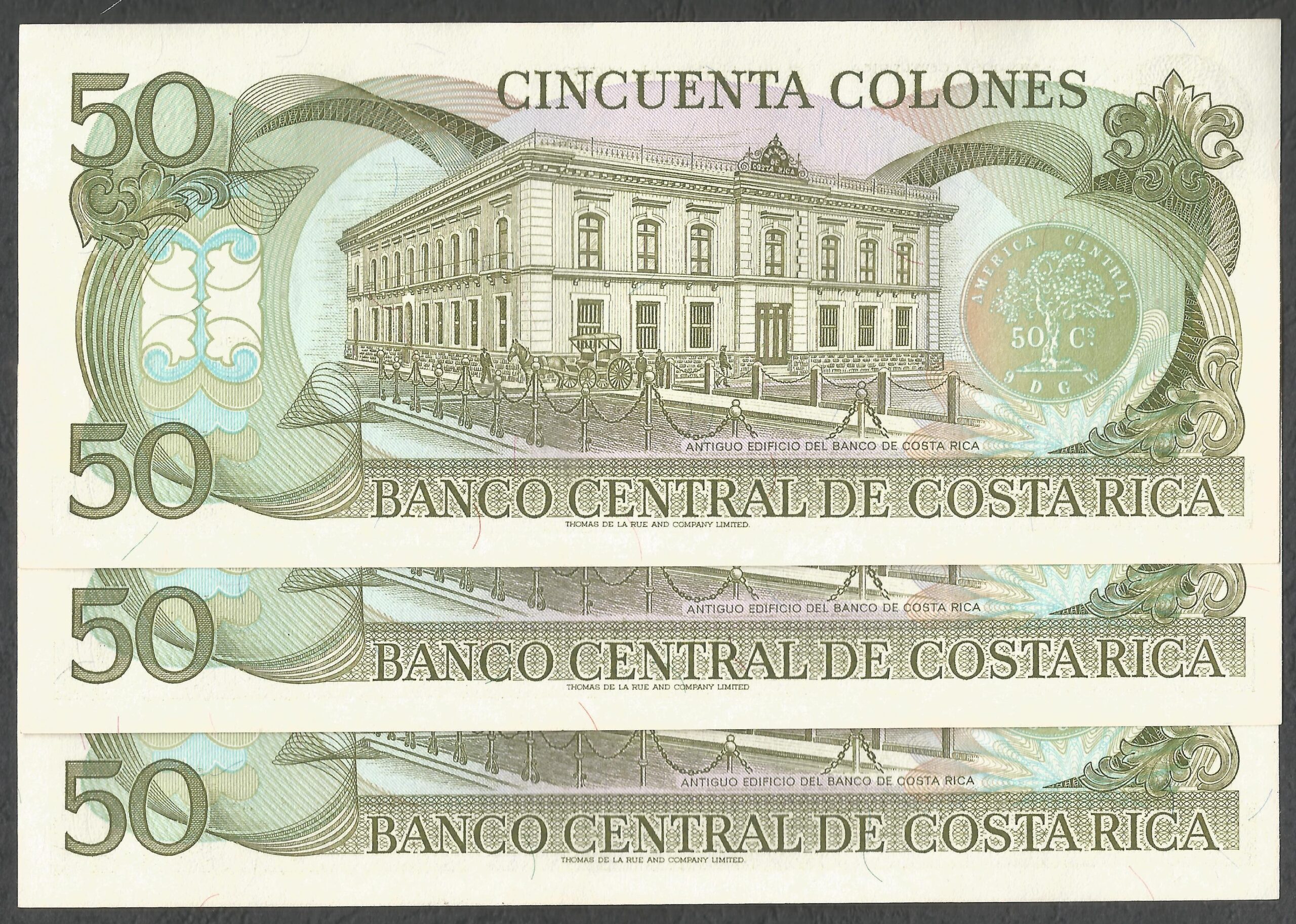 Costa Rica – 50 colones (1993) Serie E – Trío billetes consecutivos
