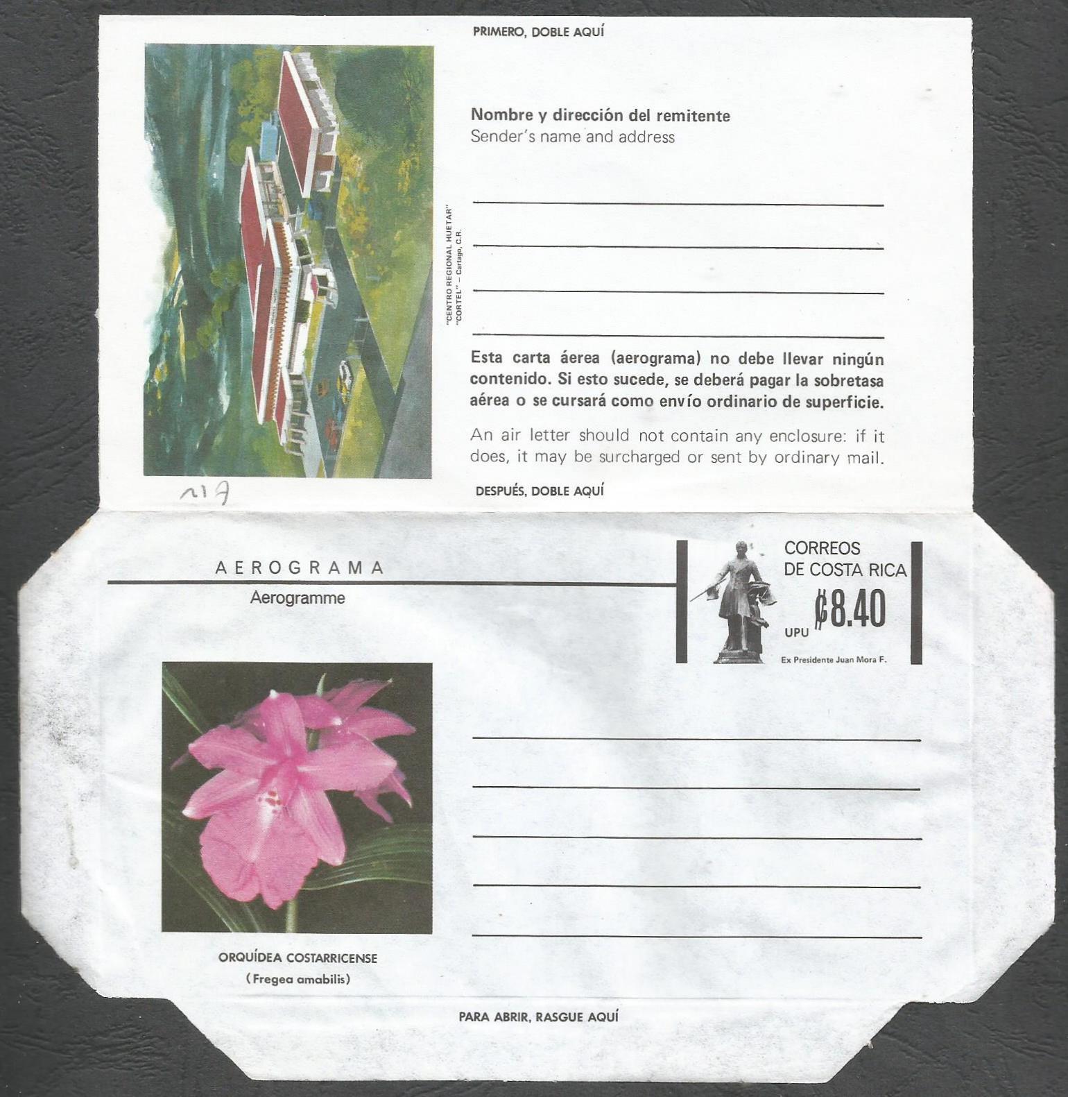 Costa Rica - Aerograma Orquídea Costarricense cantidad