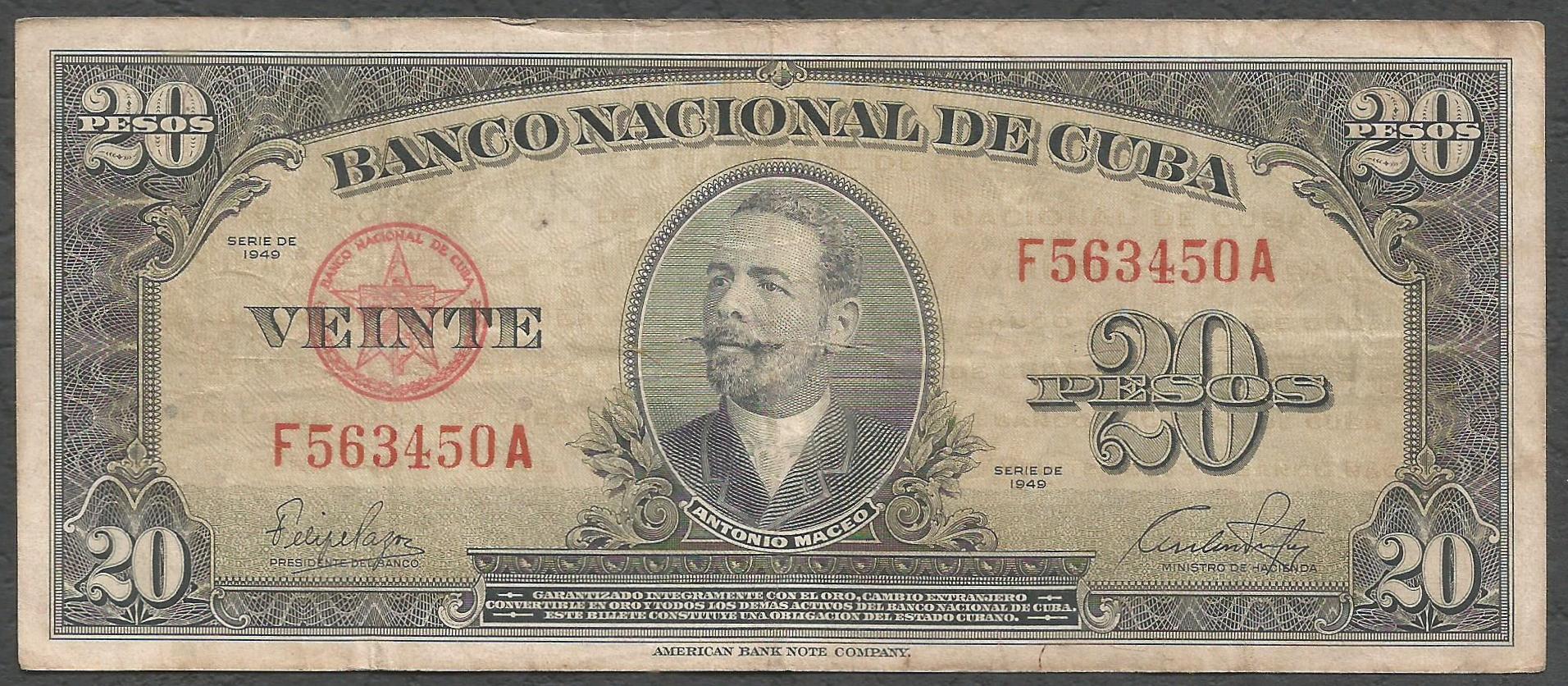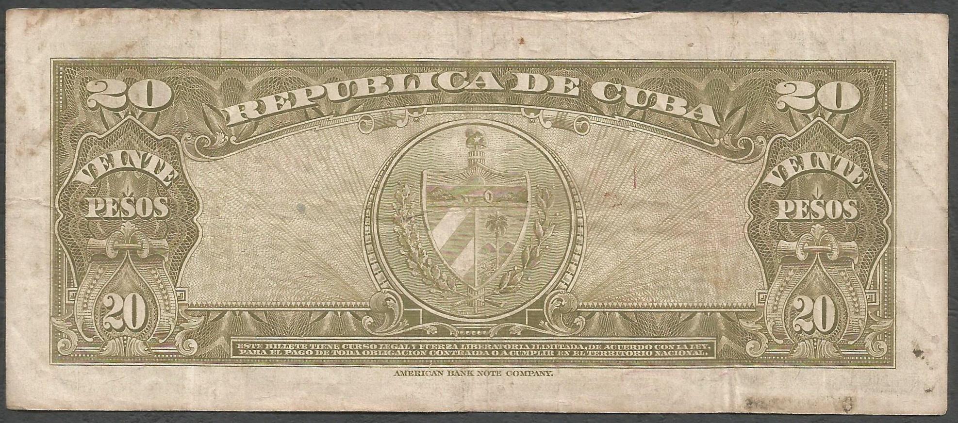 Cuba – P80a – 20 pesos (serie 1949)
