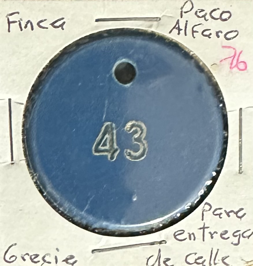 Boleto de café atribuido a la Finca de Paco Alfaro en Grecia.