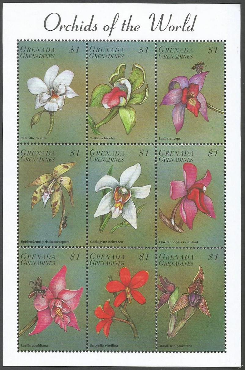 Granadinas (1998) – Hoja de nueve sellos de orquídeas