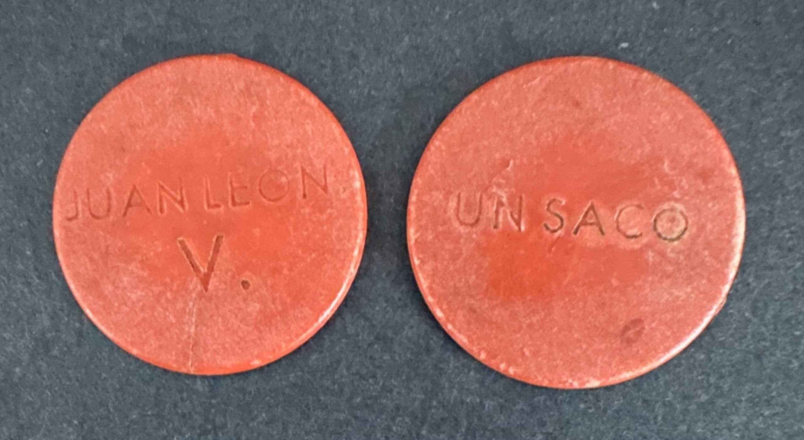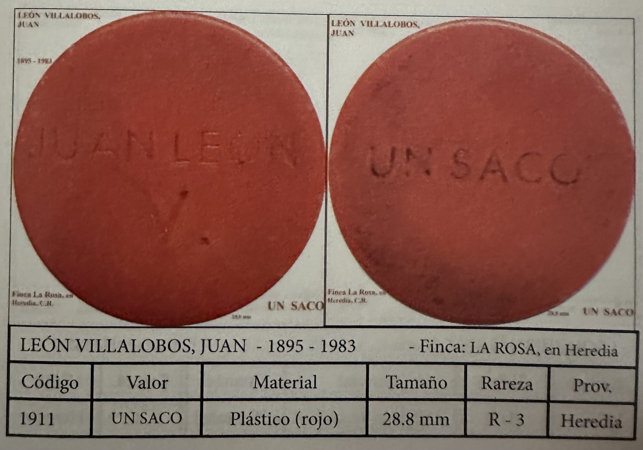 Plástico rojo, tamaño 28.8 mm. Valor: Un saco