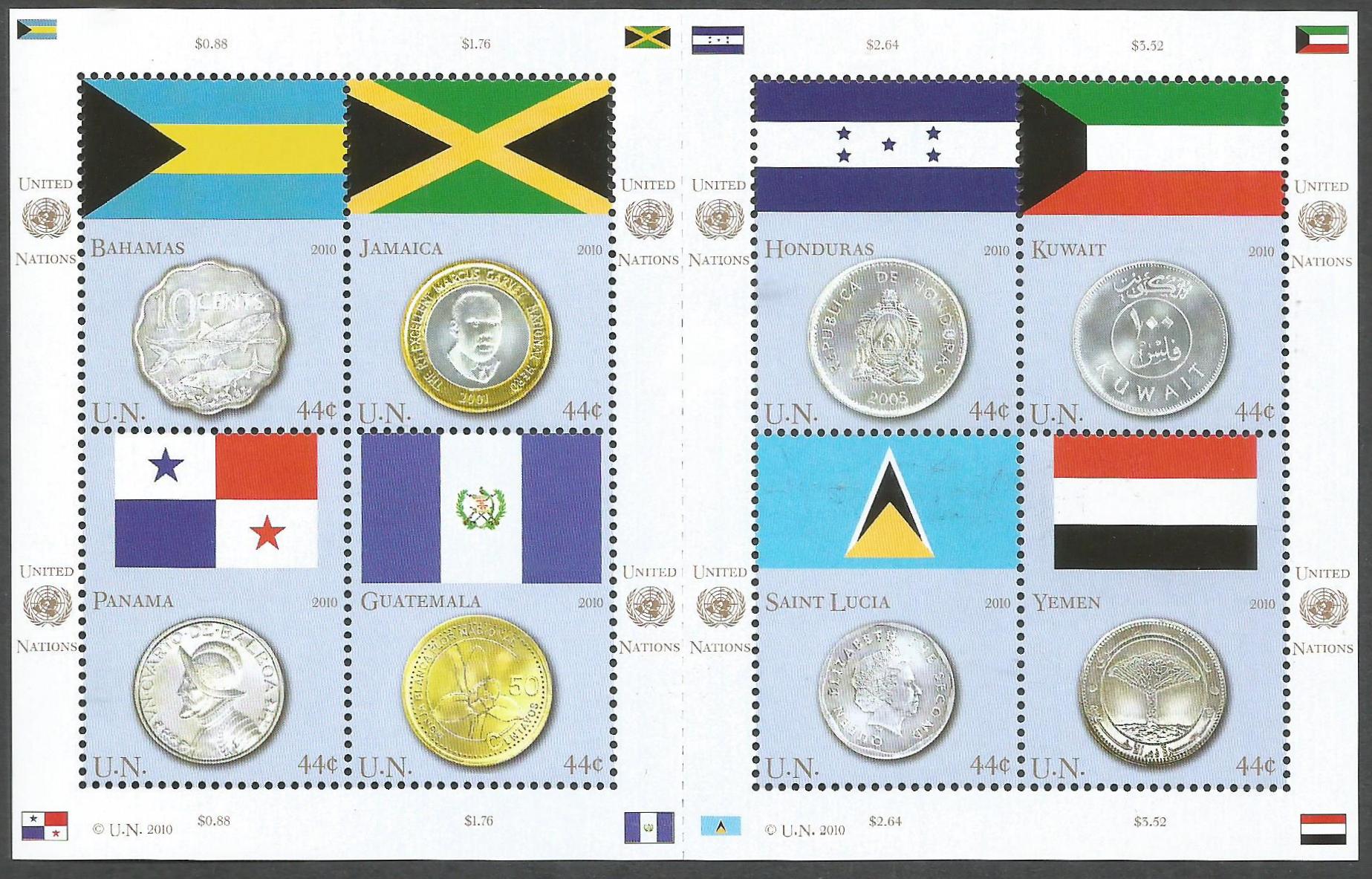 Naciones Unidas - Países miembros de las Naciones Unidas y sus equivalentes monedas (2010) cantidad