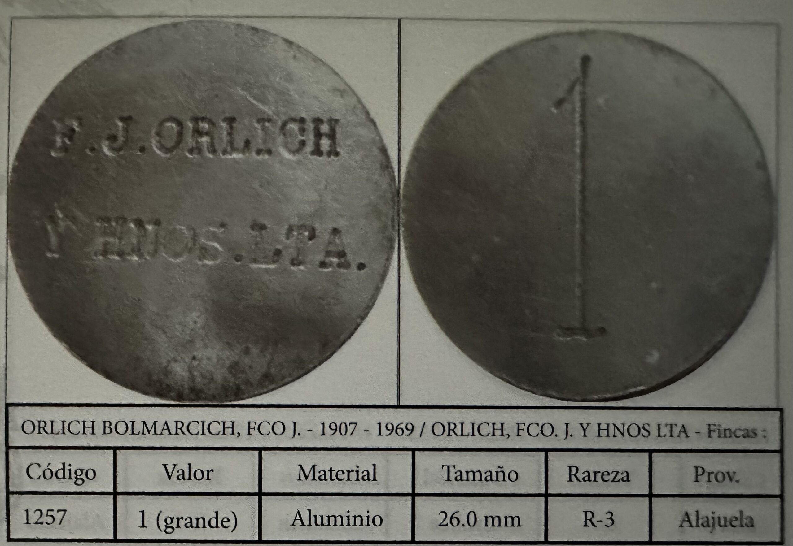 Boleto de café de la finca de Francisco J. Orlich y Hnos. Ltda.