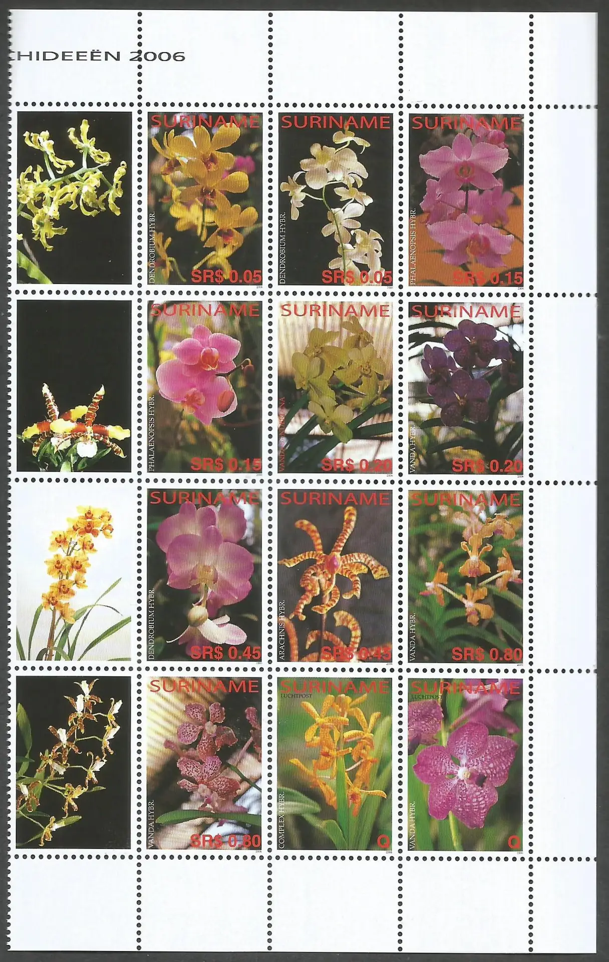 Orchids displayed se-tenant: Dendrobium sp., Dendrobium sp., Phalaenopsis sp., Phalaenopsis sp., Vanda sanderiana, Vanda sp., Dendrobium sp., Arachnis sp., Vanda sp., Vanda sp., Unidentified orchid and Vanda sp