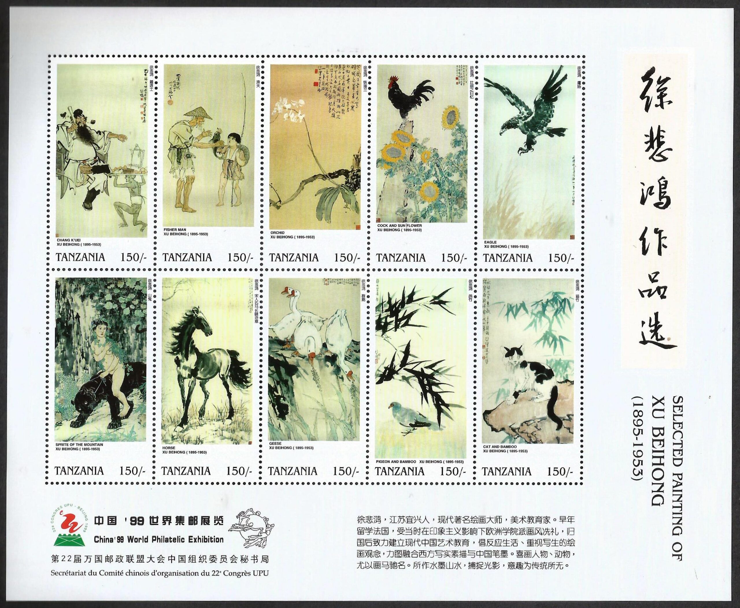 Tanzania – Selected paintings of Xu Beihong – World Philatelic Exhibition China 99