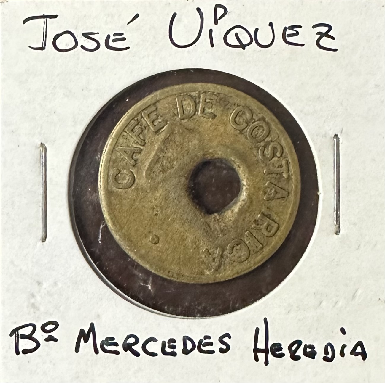 Boleto de café utilizado por el señor José Víquez en su finca en Barrio Mercedes de Heredia